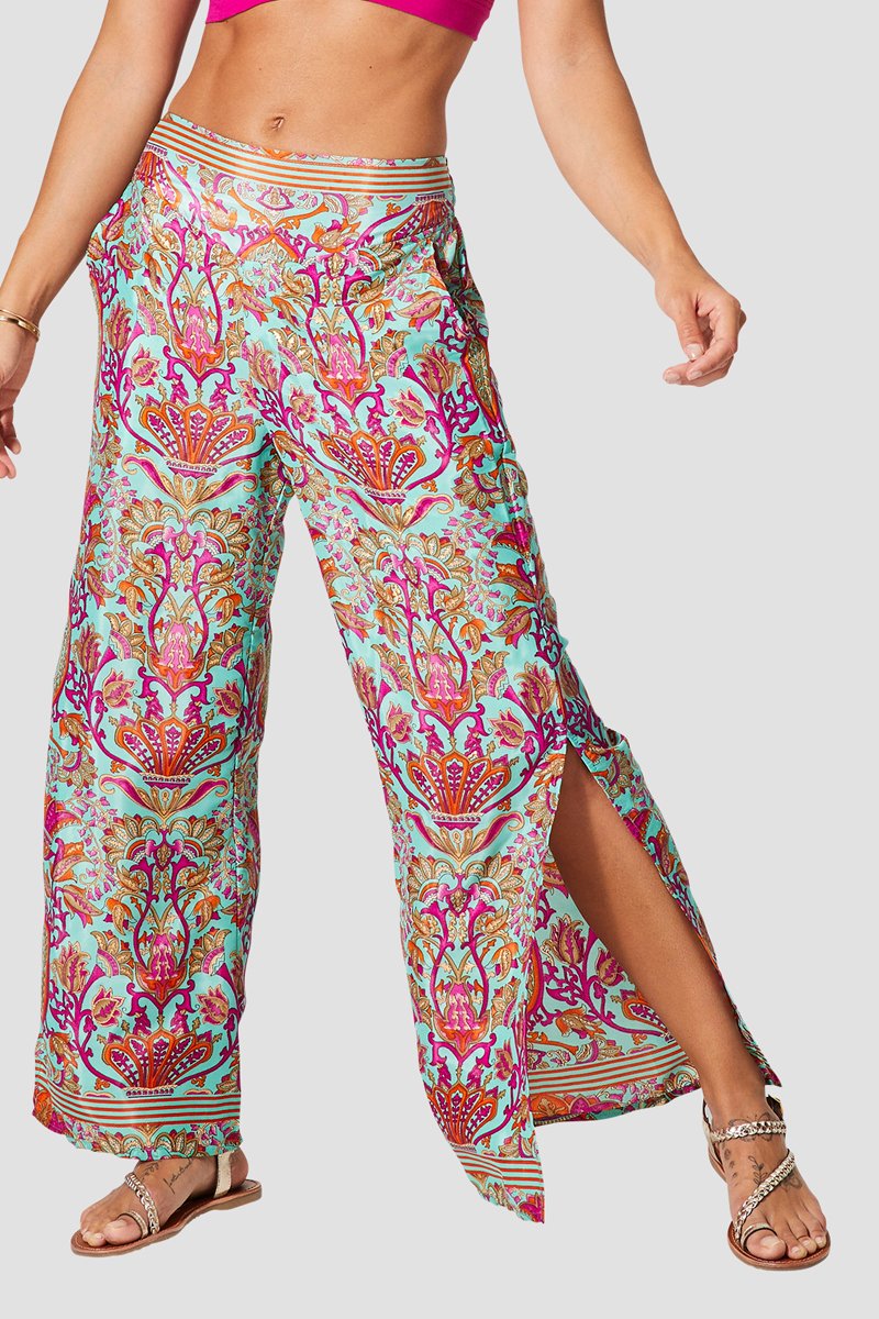 Calças flare - Rosa e azul - Azul, laranja e rosa