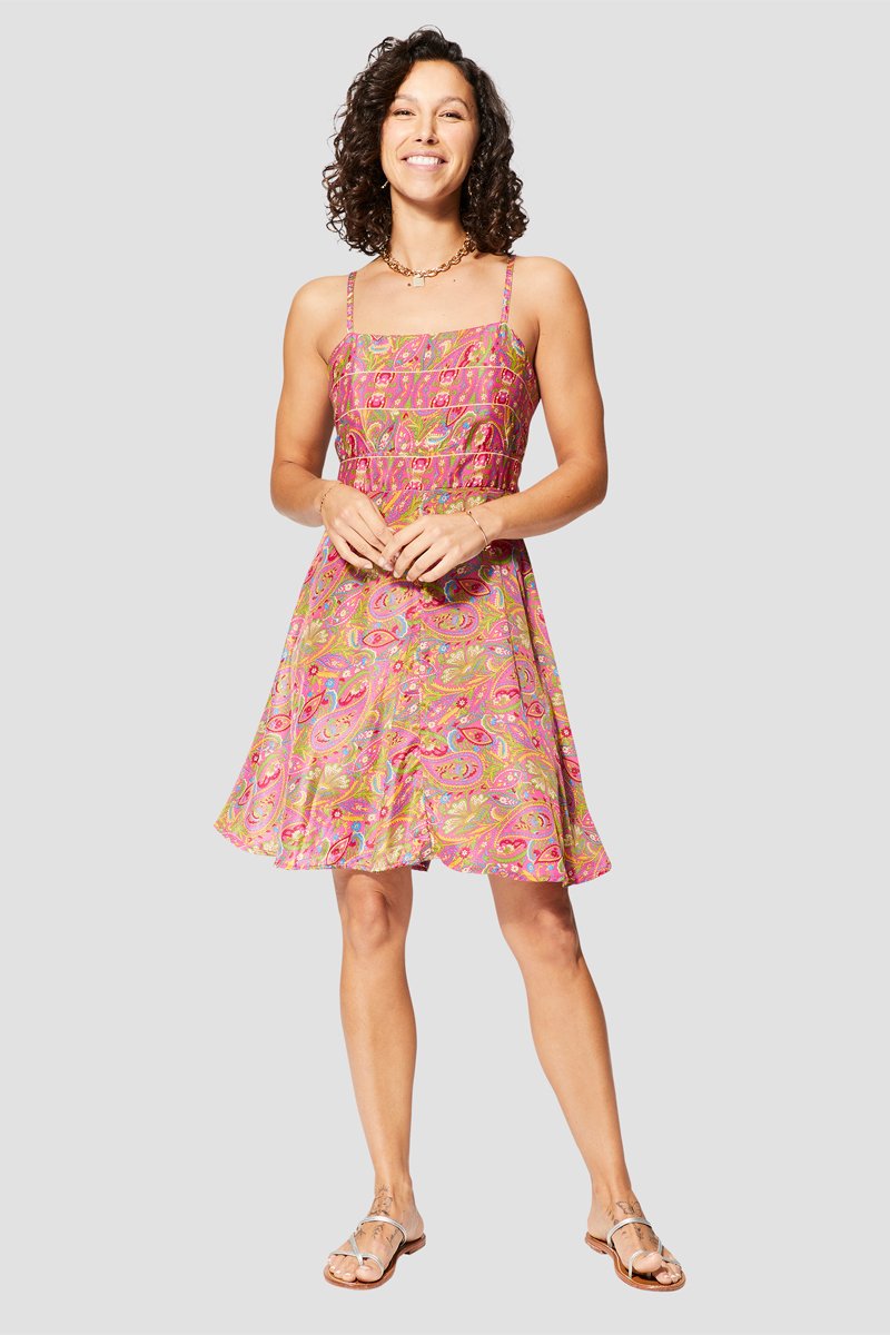 Vestido com folhos - Rosa e verde - Verde e rosa