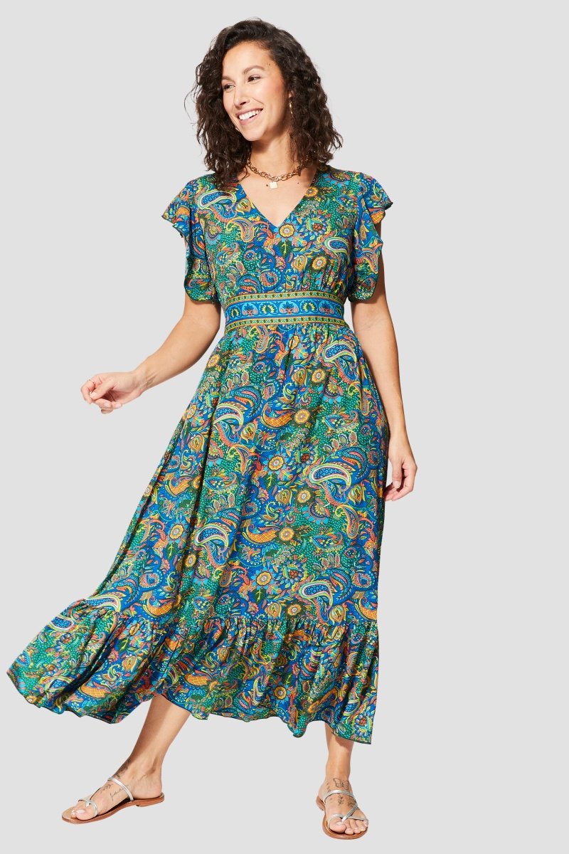Vestido comprido - Verde e azul - Azul, verde e amarelo