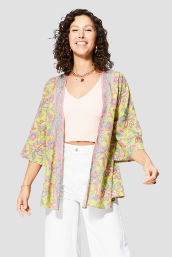 Quimono - Verde - Verde, amarelo e rosa
