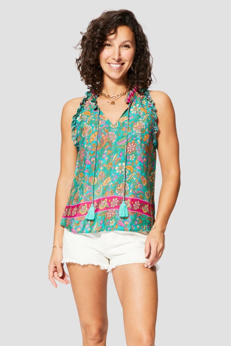 Top - Verde - Verde, laranja e rosa