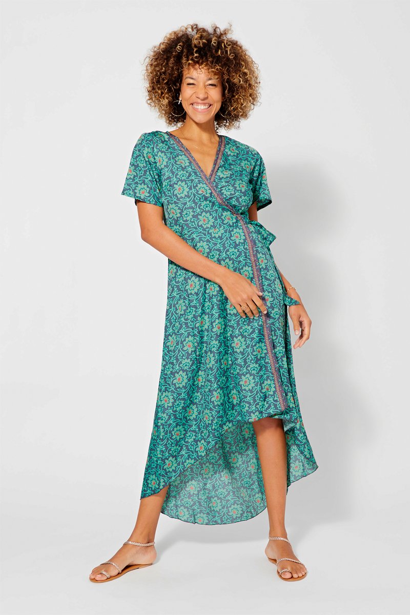 Vestido traçado - Azul e verde - Azul e verde