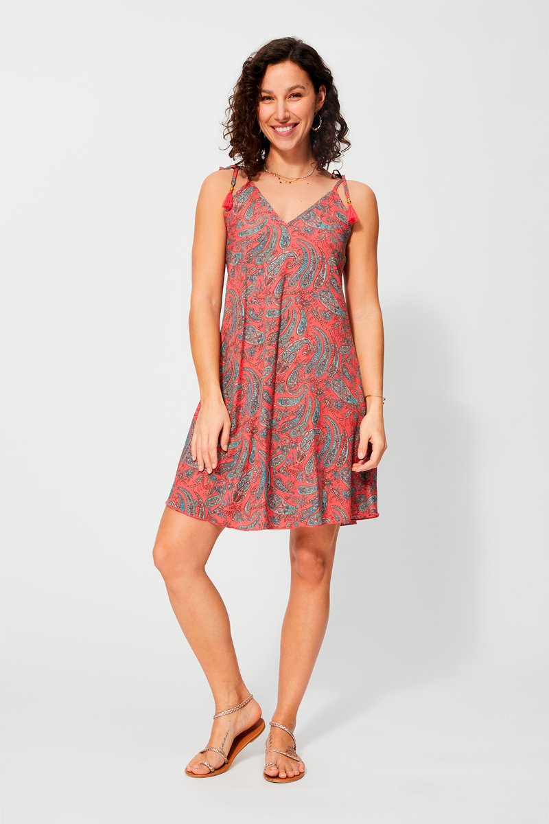 Vestido trapézio - Rosa - Azul e rosa