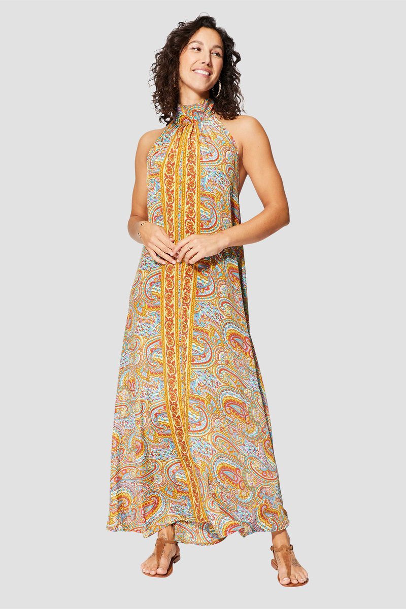 Vestido comprido - Laranja - Verde, amarelo e laranja