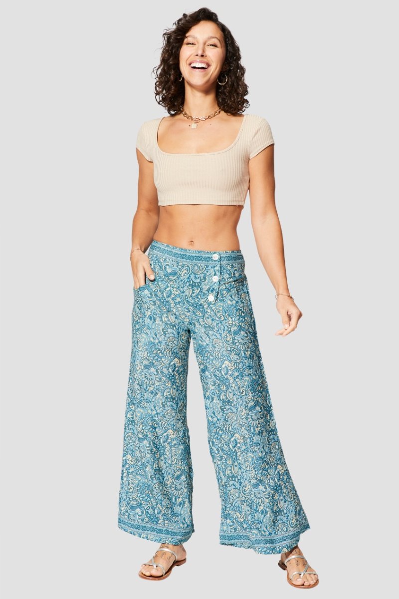 Calças - Azul-petróleo - Bege, azul e cinzento