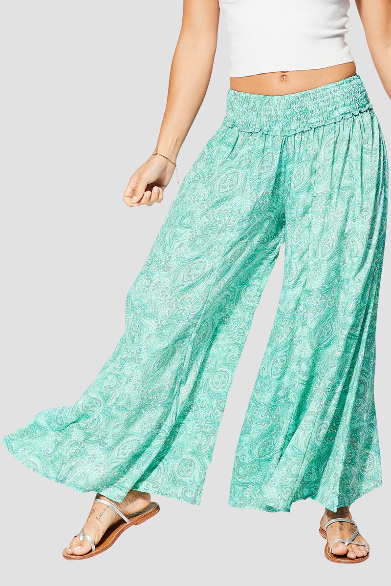 Calças palazzo - Verde - Branco e verde