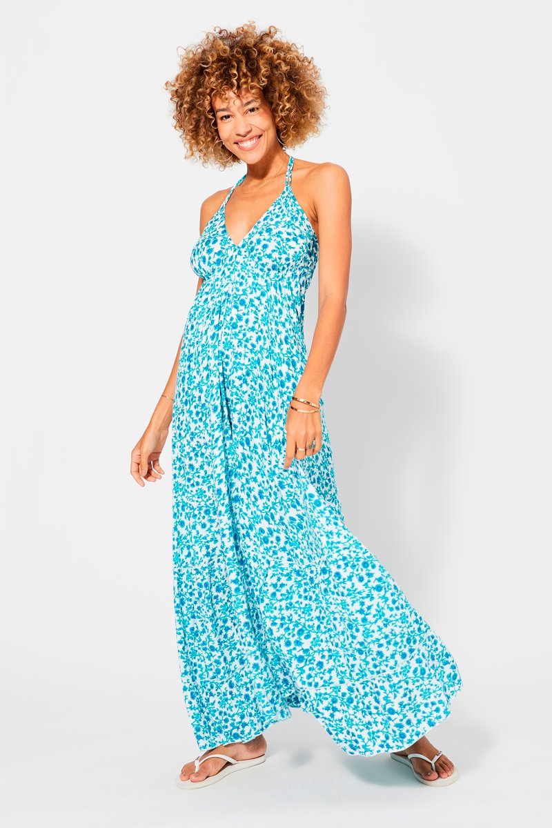 Vestido comprido - Branco e azul - Branco e azul