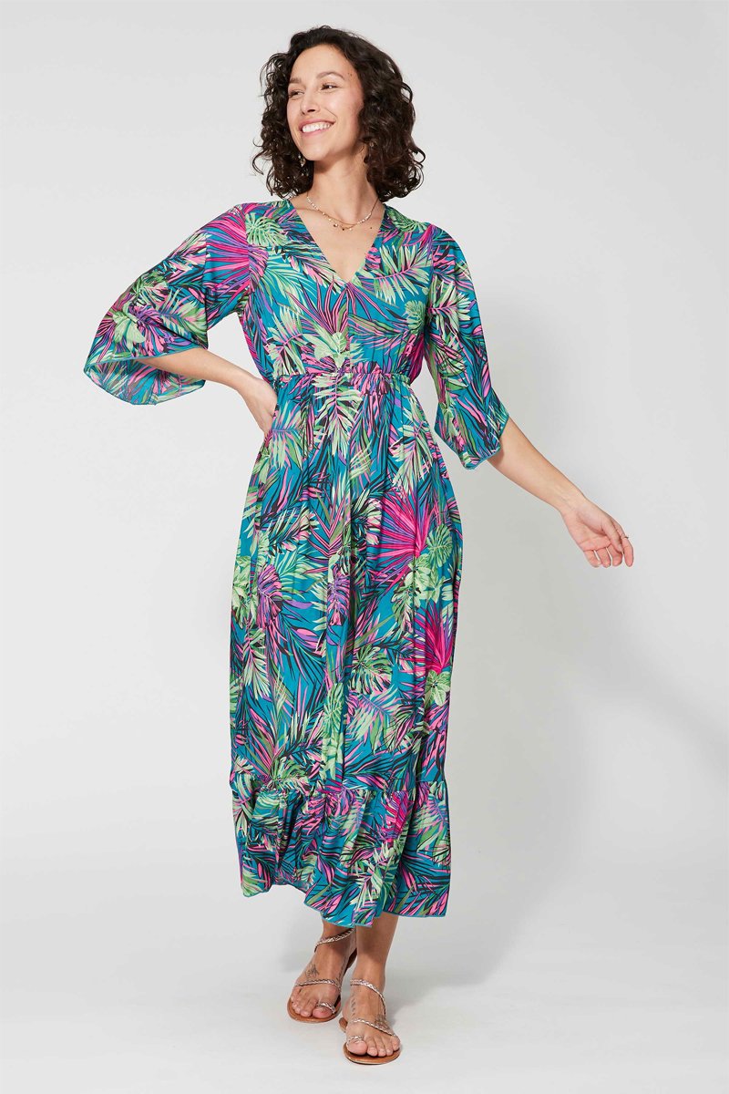 Vestido comprido - Rosa e azul - Azul, verde e rosa