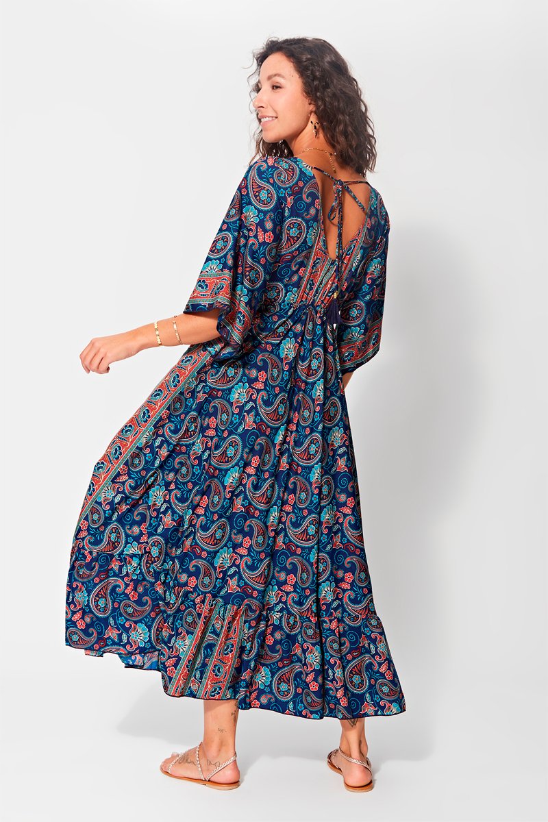 Vestido comprido - Azul e rosa
