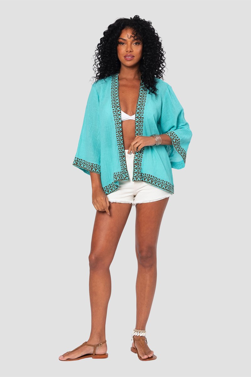 Quimono - Turquesa - Castanho