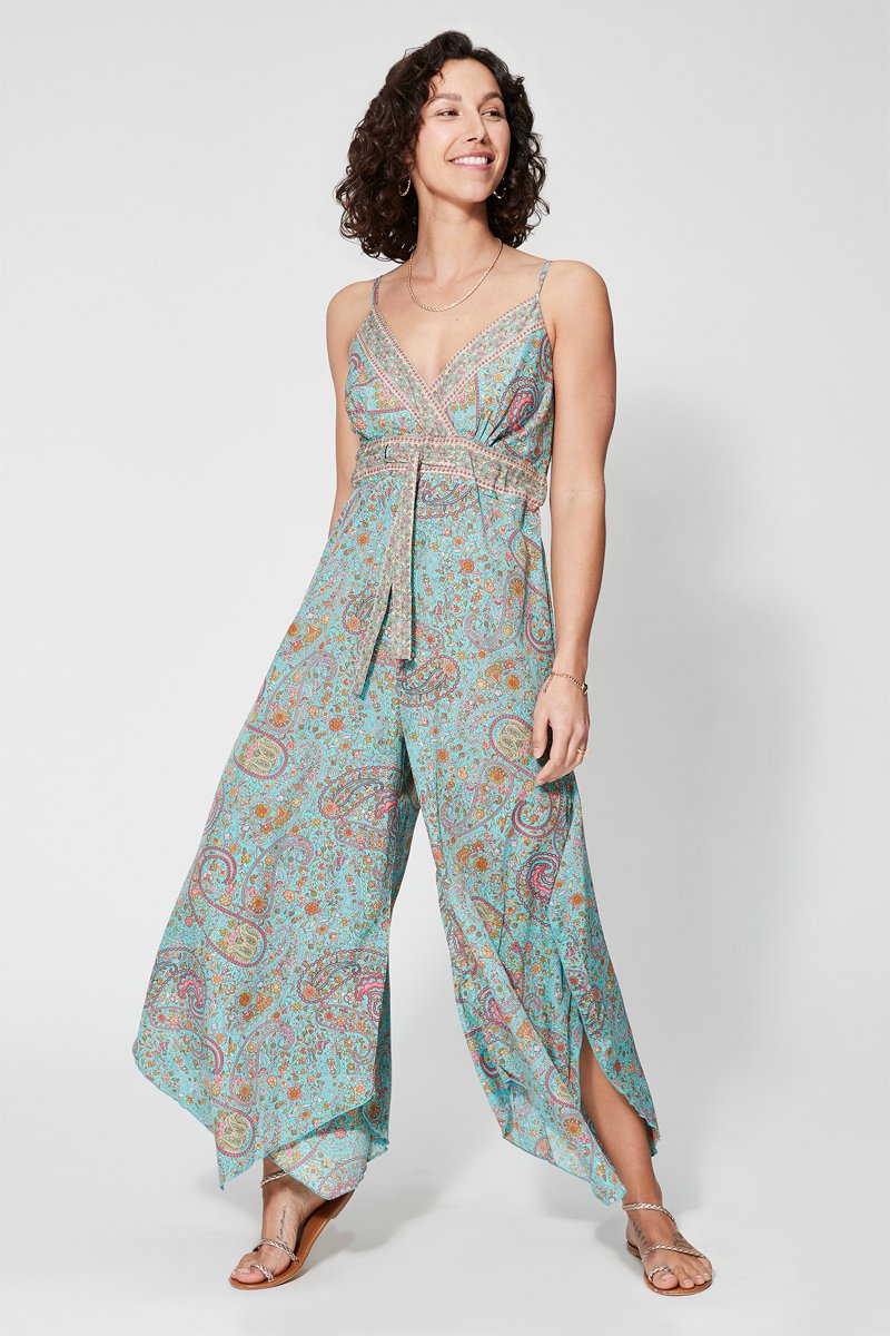 Macacão - Turquesa - Azul e laranja