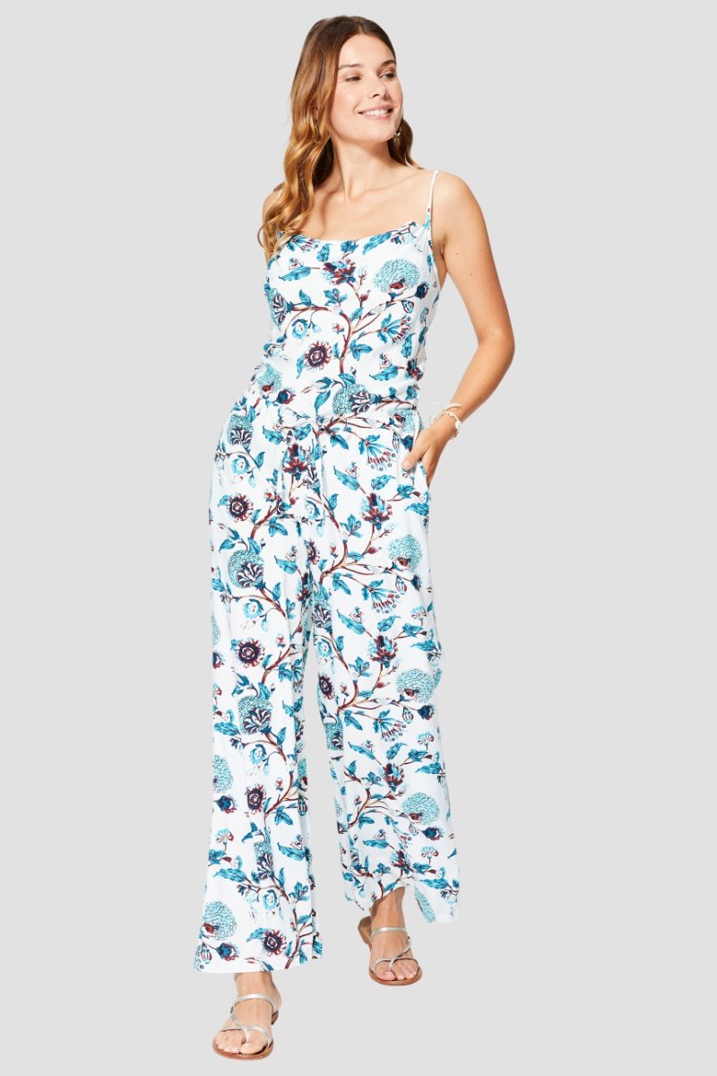 Macacão - Branco e azul - Branco, azul e castanho