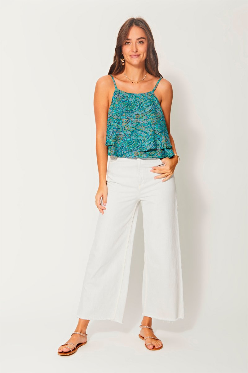 Camisola interior com folhos - Turquesa - Azul, verde e violeta