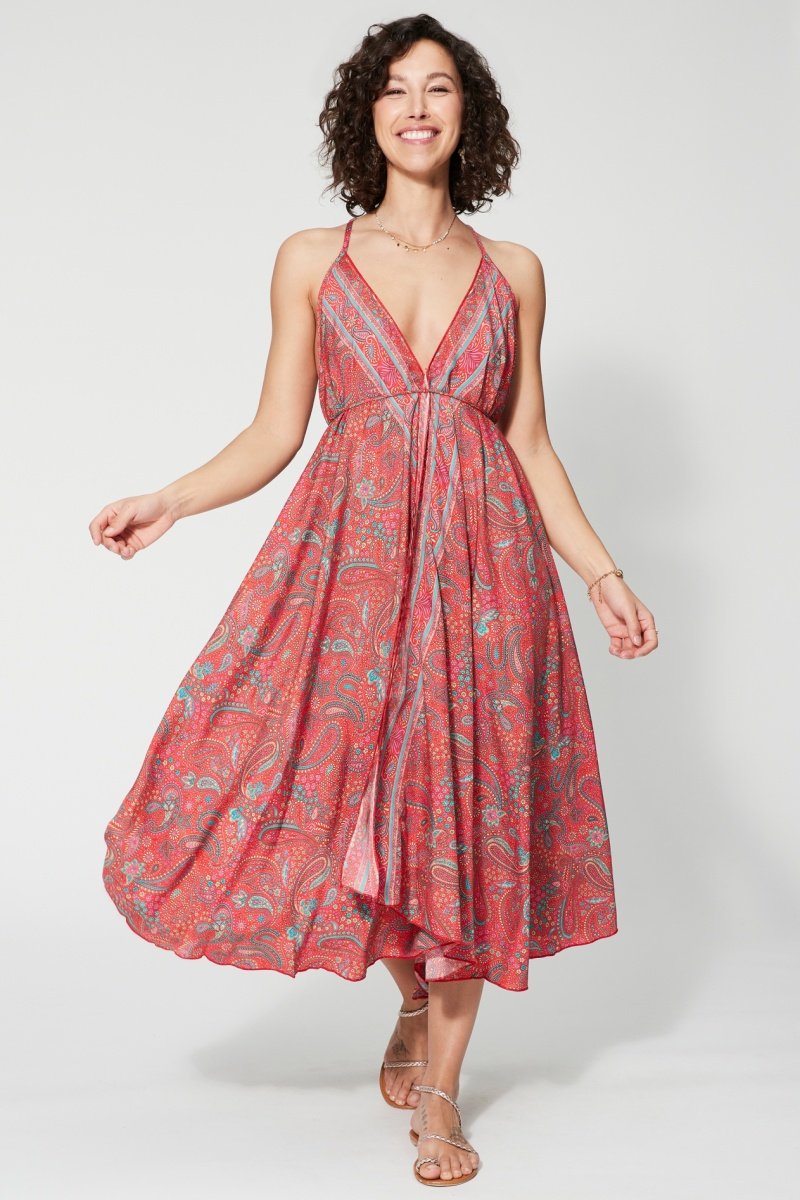 Vestido midi - Vermelho - Branco, vermelho e azul