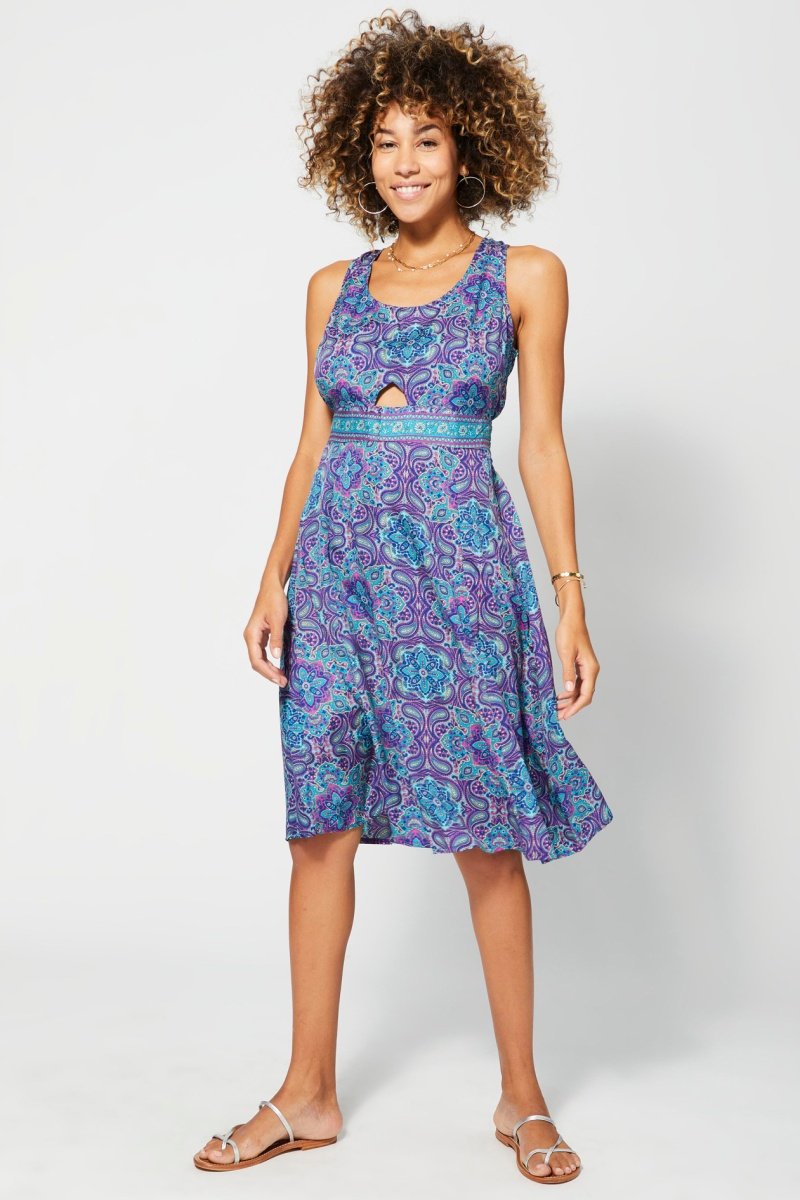 Vestido midi - Azul e rosa - Azul, violeta e rosa