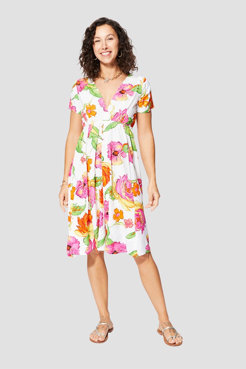 Vestido com folhos - Branco e rosa - Branco e rosa