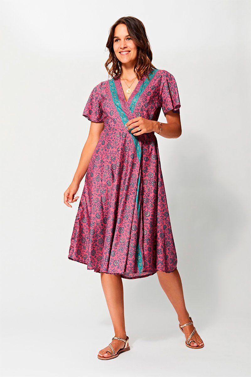 Vestido midi - Rosa e cinzento - Rosa e cinzento