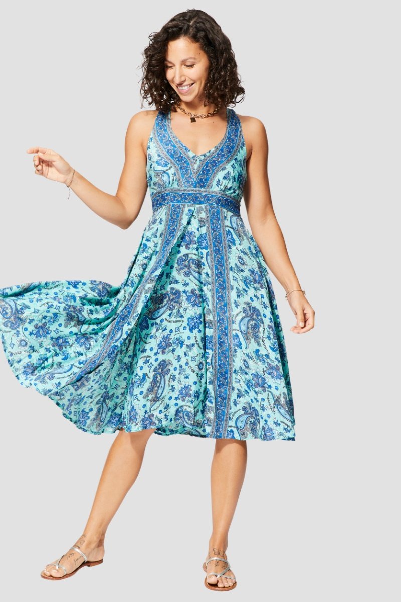 Vestido midi - Azul - Branco e azul