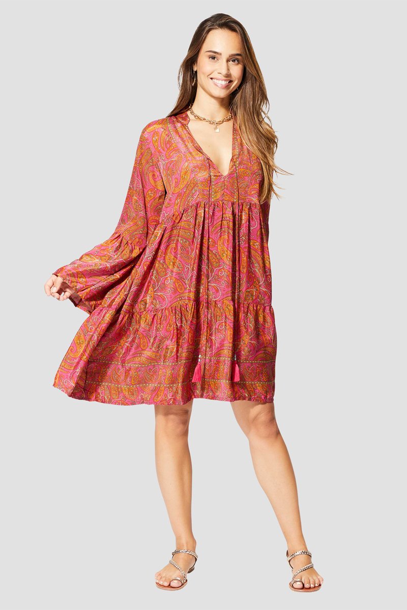 Vestido com folhos - Rosa - Amarelo e rosa