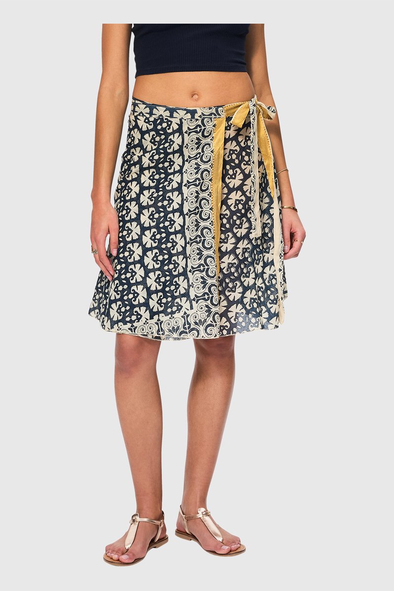 Saia traçada - Azul-noite - Branco, azul e laranja