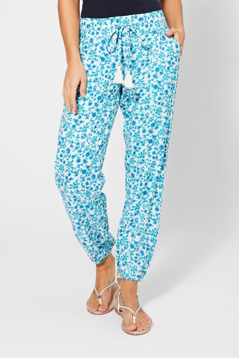 Calças direitas 7/8 - Turquesa - Branco e azul