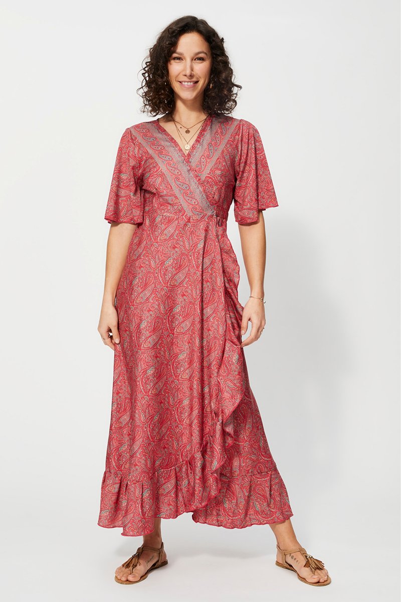 Vestido traçado - Vermelho - Vermelho e cinzento