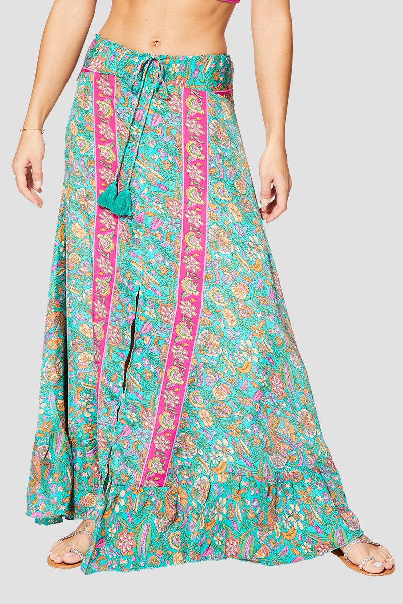 Saia comprida - Verde e fúcsia - Verde, laranja e rosa