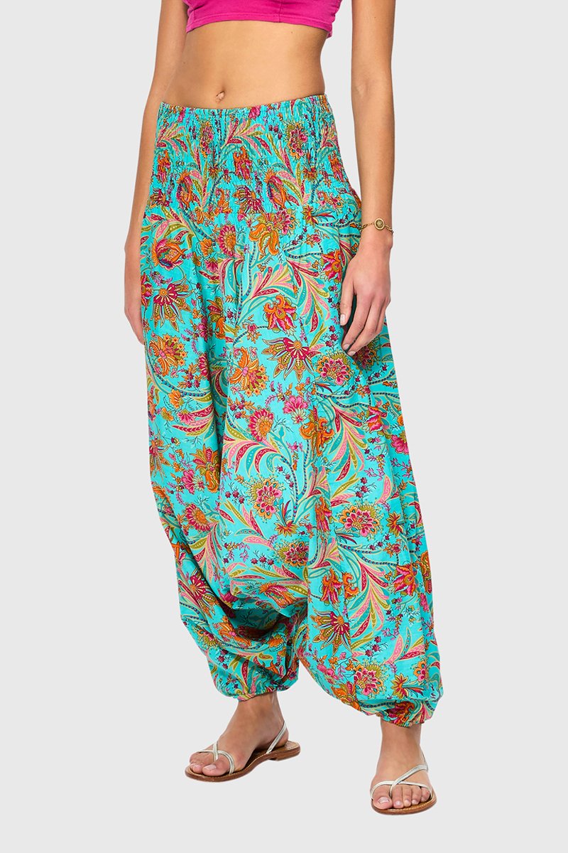 Calças saruel 2 em 1 - Turquesa - Laranja