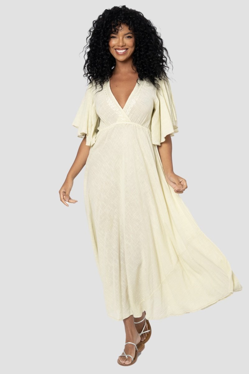 Vestido comprido - Dourado e laranja - Verde, castanho e laranja