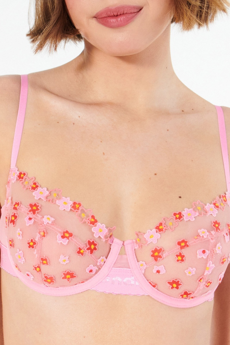 Soutien em tule e tule bordado com aros.