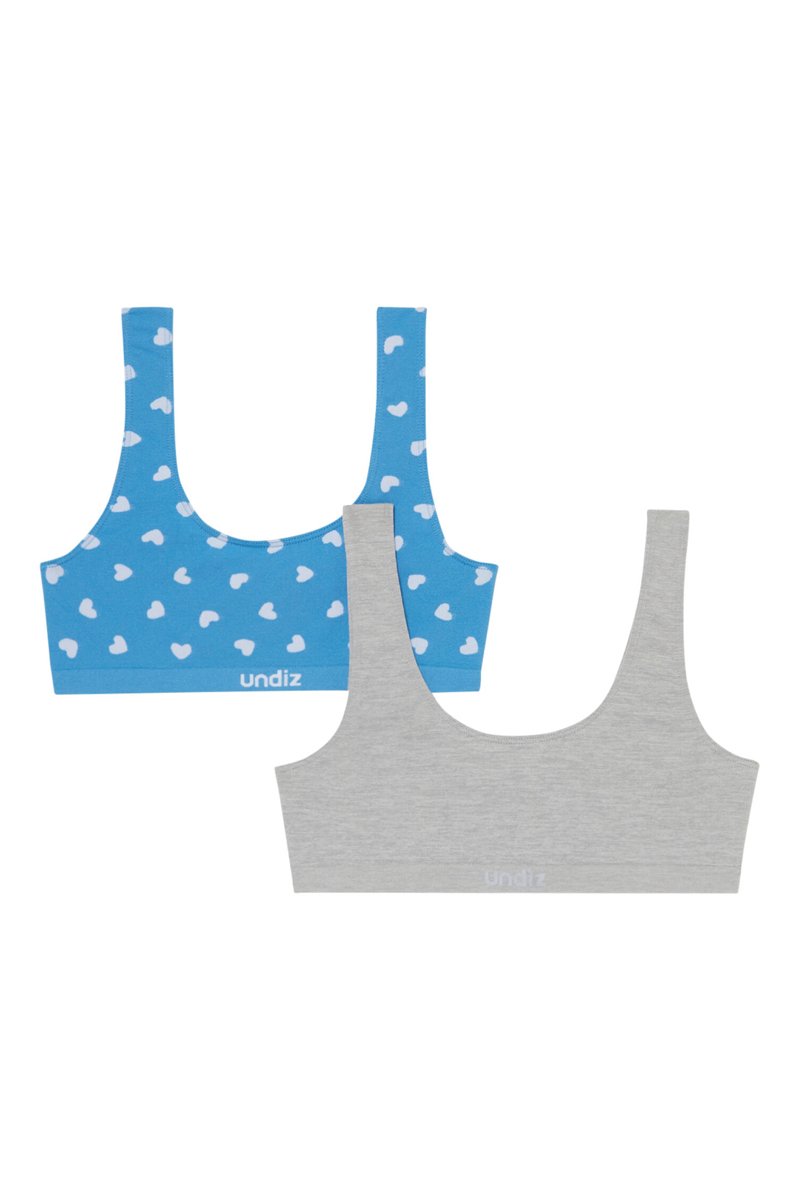 2 soutiens desportivos sem aros dos quais 1 com estampado de coração.