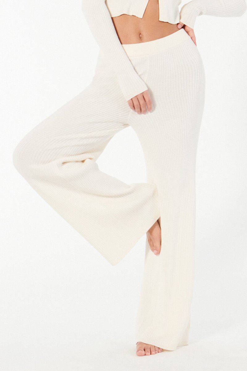 Calças largas em malha canelada.