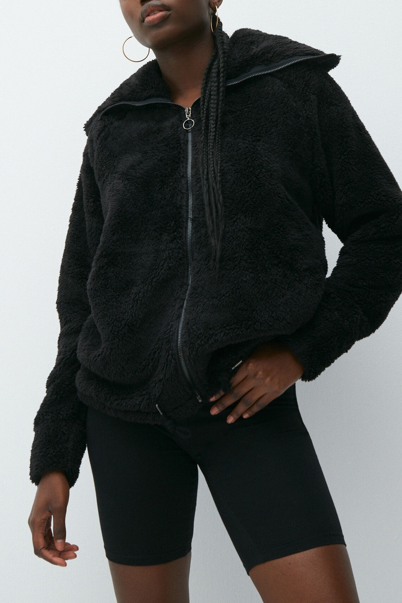 Casaco em pelo sintético.