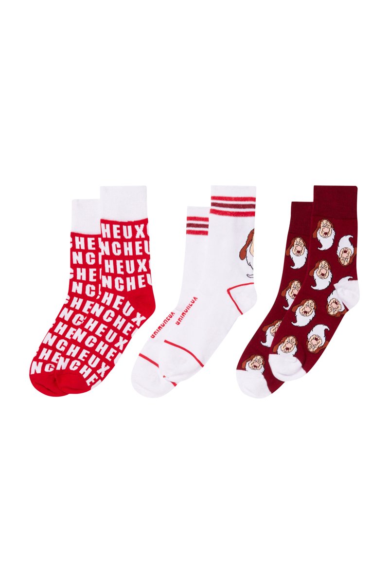 3 pares de meias Grinchoniz - Vermelho e branco - Undiz