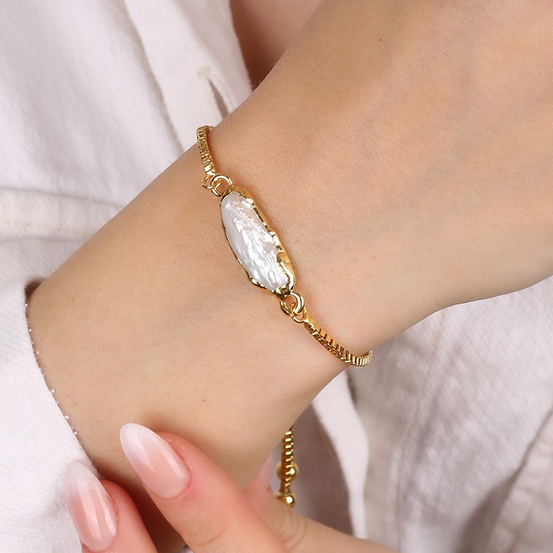 Pulseira - Latão banhado a ouro e pérola