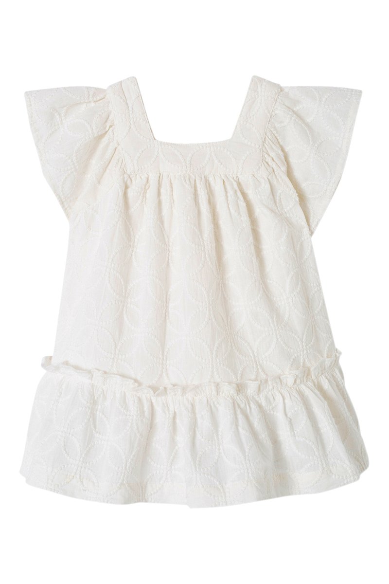 Vestido com folhos - Cru