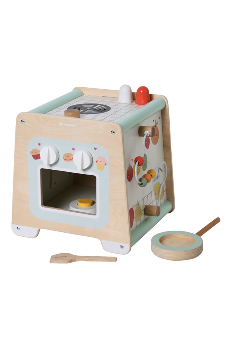 Cubo multi-atividades de madeira - Branco e verde - Vertbaudet