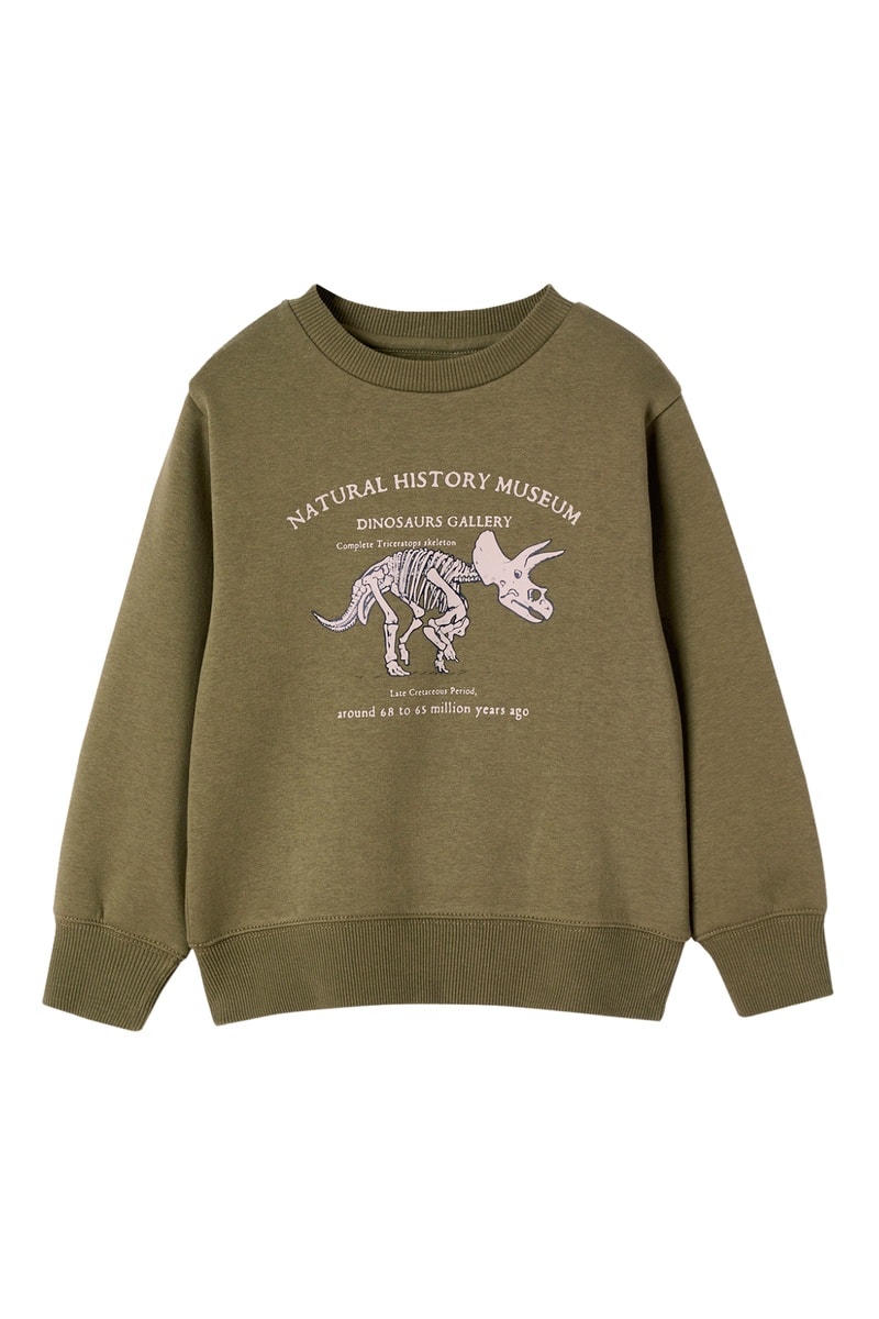 Números, inscrição e padrão fósseis de dinossauro à frente.