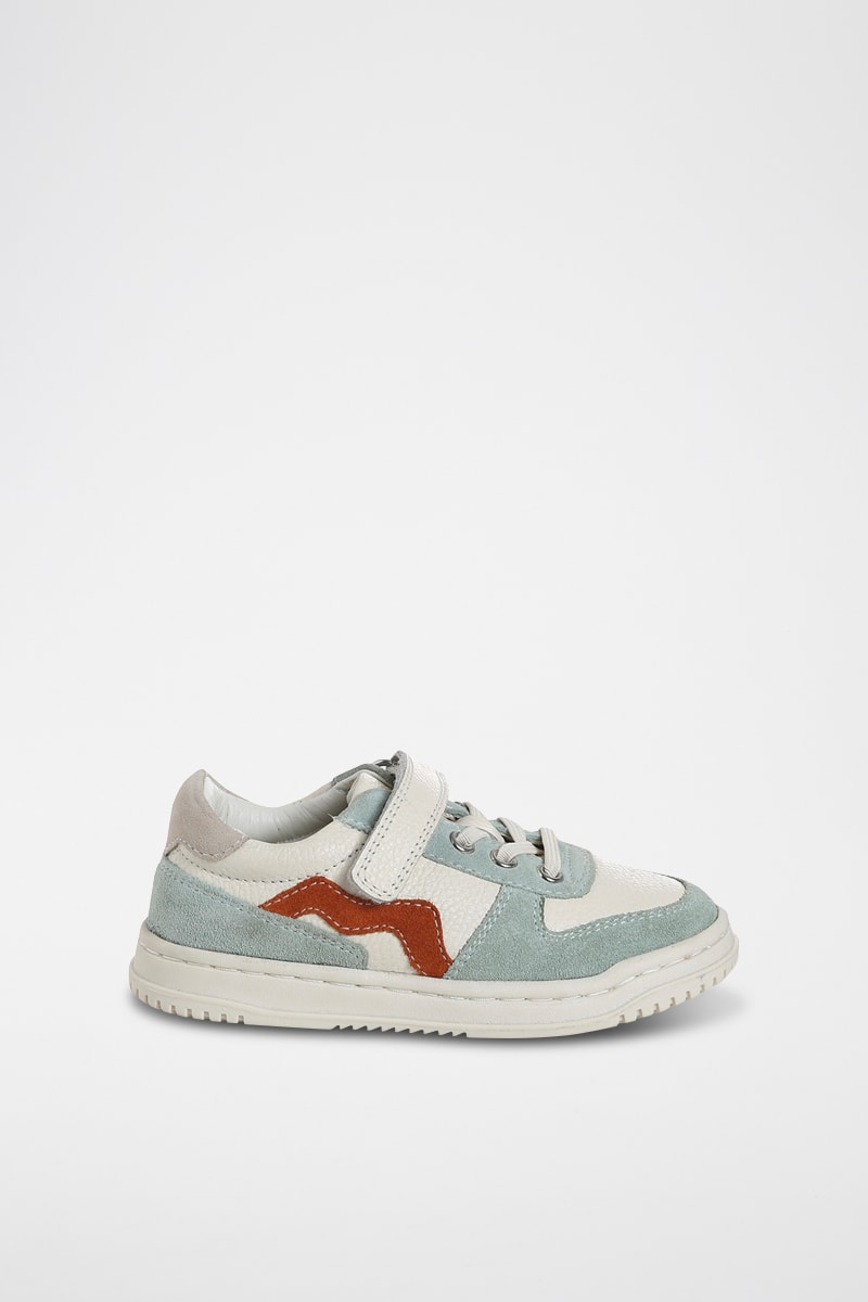 Sapatilhas em couro granulado e nobuck.