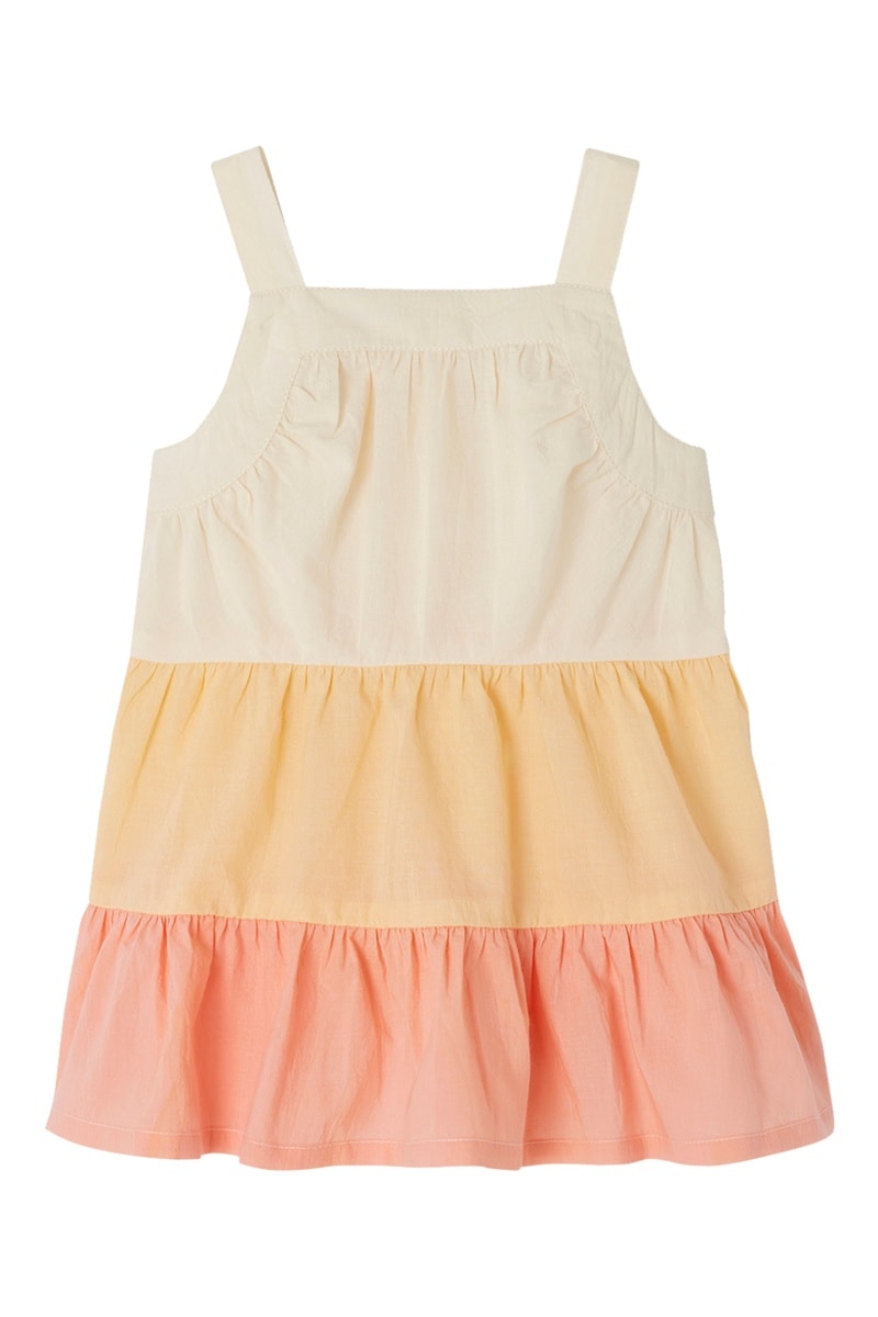 Vestido com folhos - Cru e coral