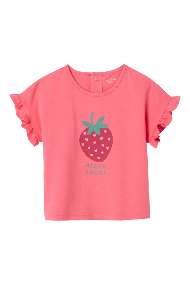 T-shirt em algodão biológico - Rosa e vermelho