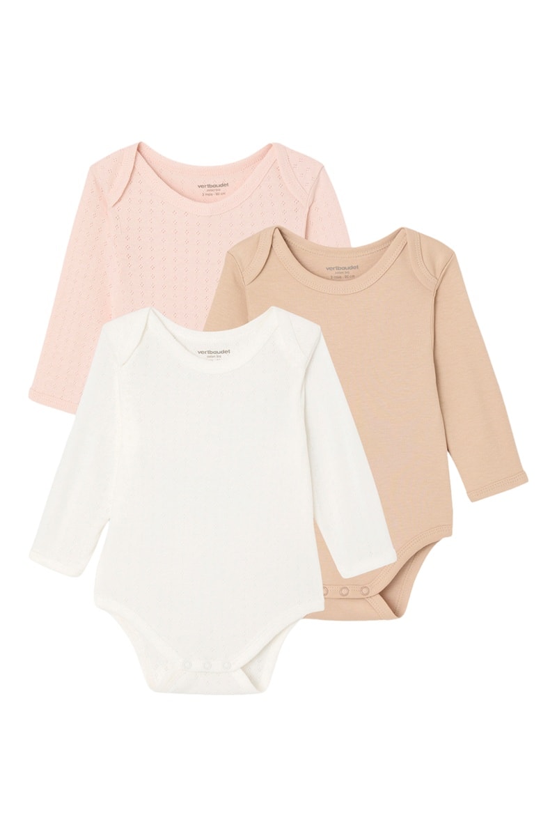 3 bodies em algodão biológico - Cru e rosa-maquilhagem