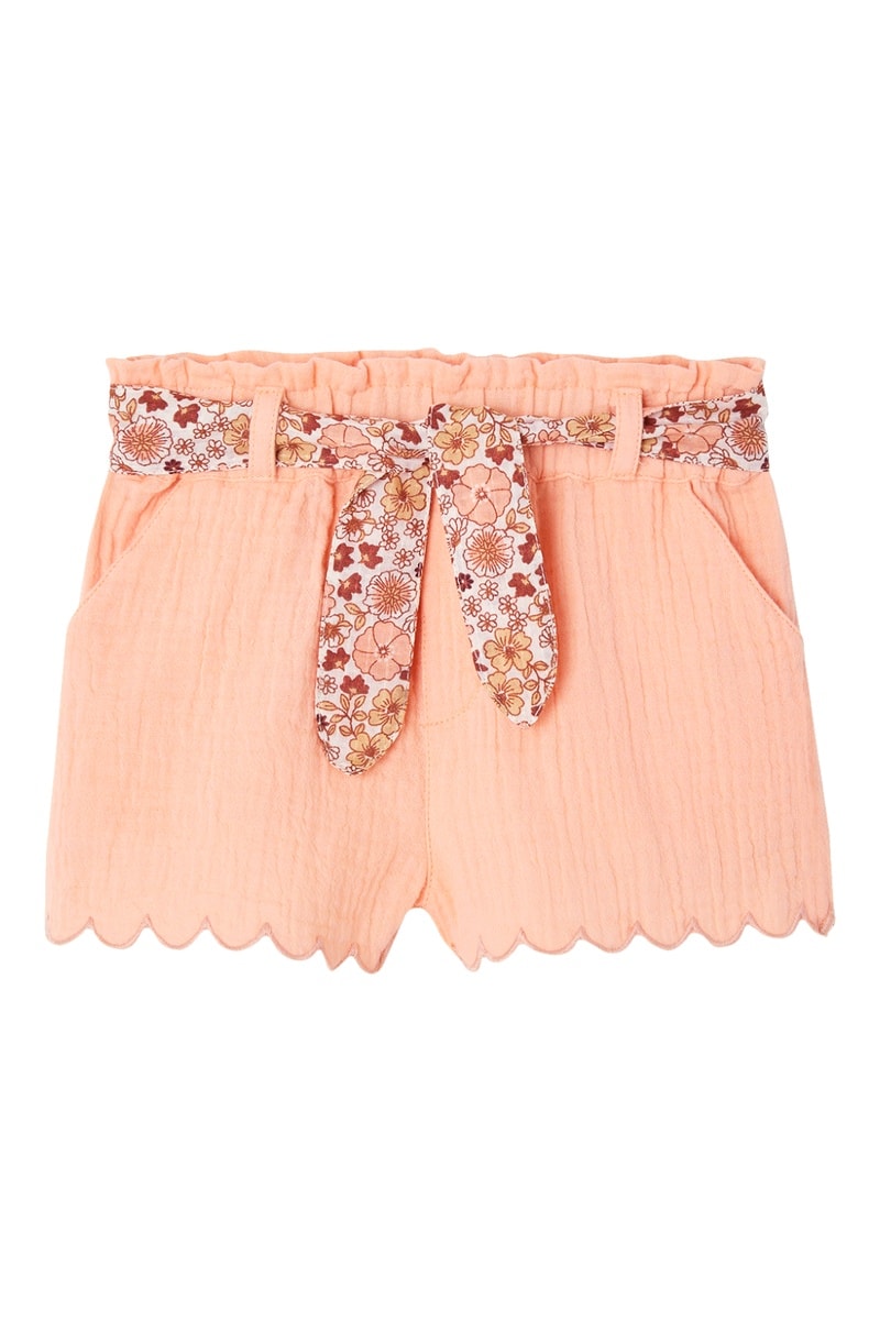 Atilhos sob presilhas de atar com estampado florido na cintura.