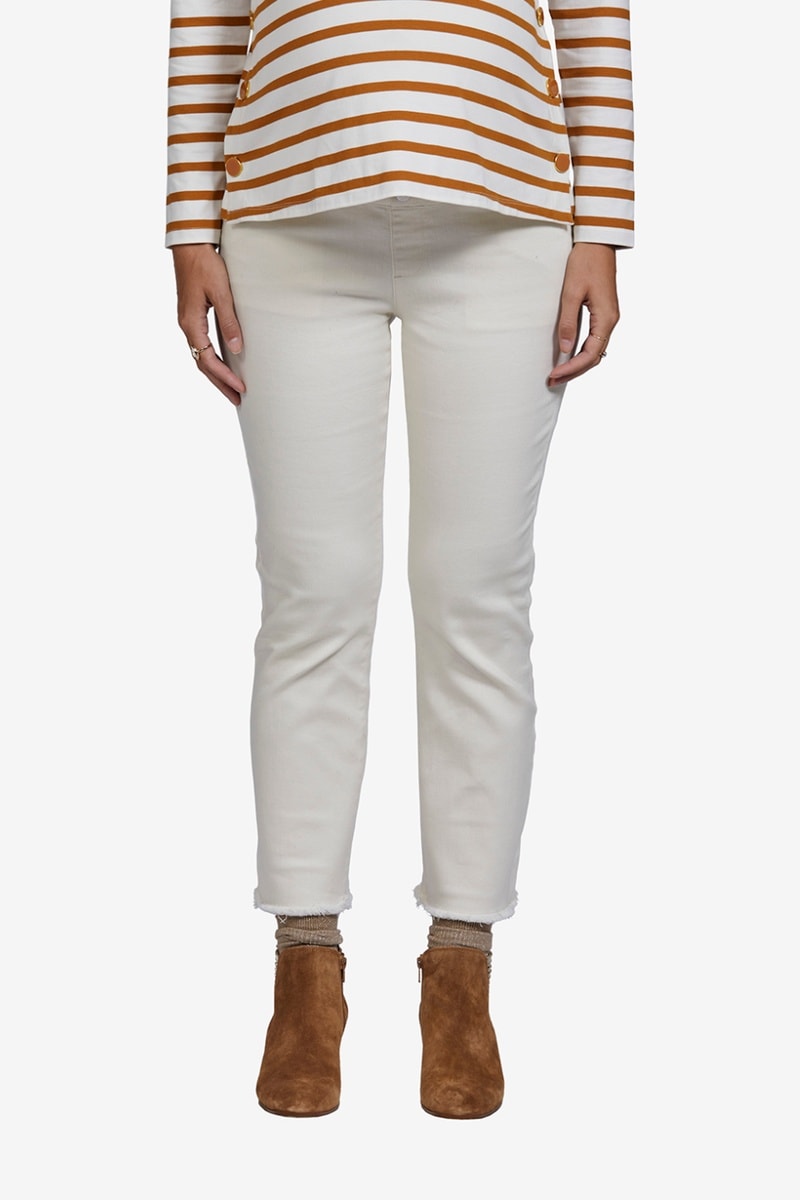 Calças de grávida com faixa - Bege-claro