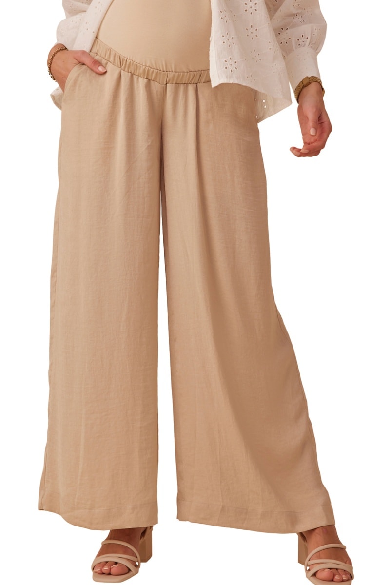 Calças de grávida com faixa - Bege