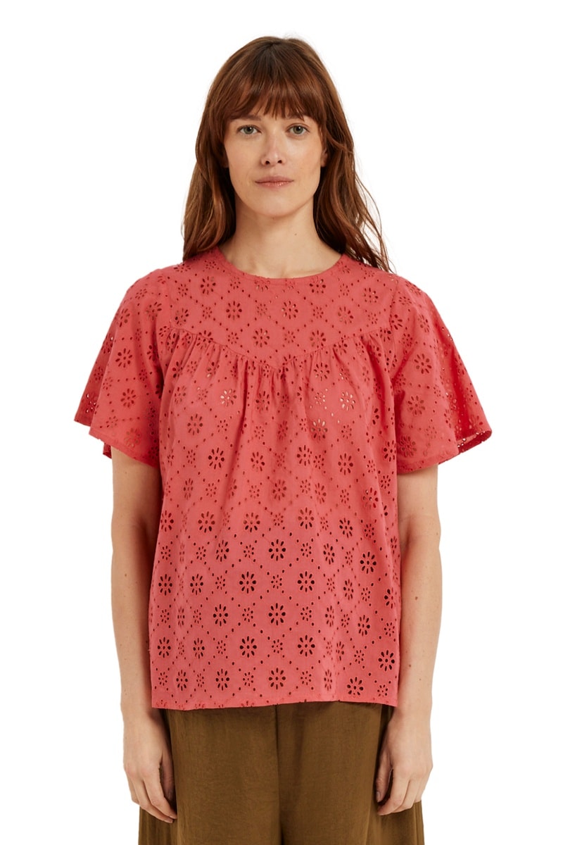 Blusa em bordado inglês - Vermelho-framboesa
