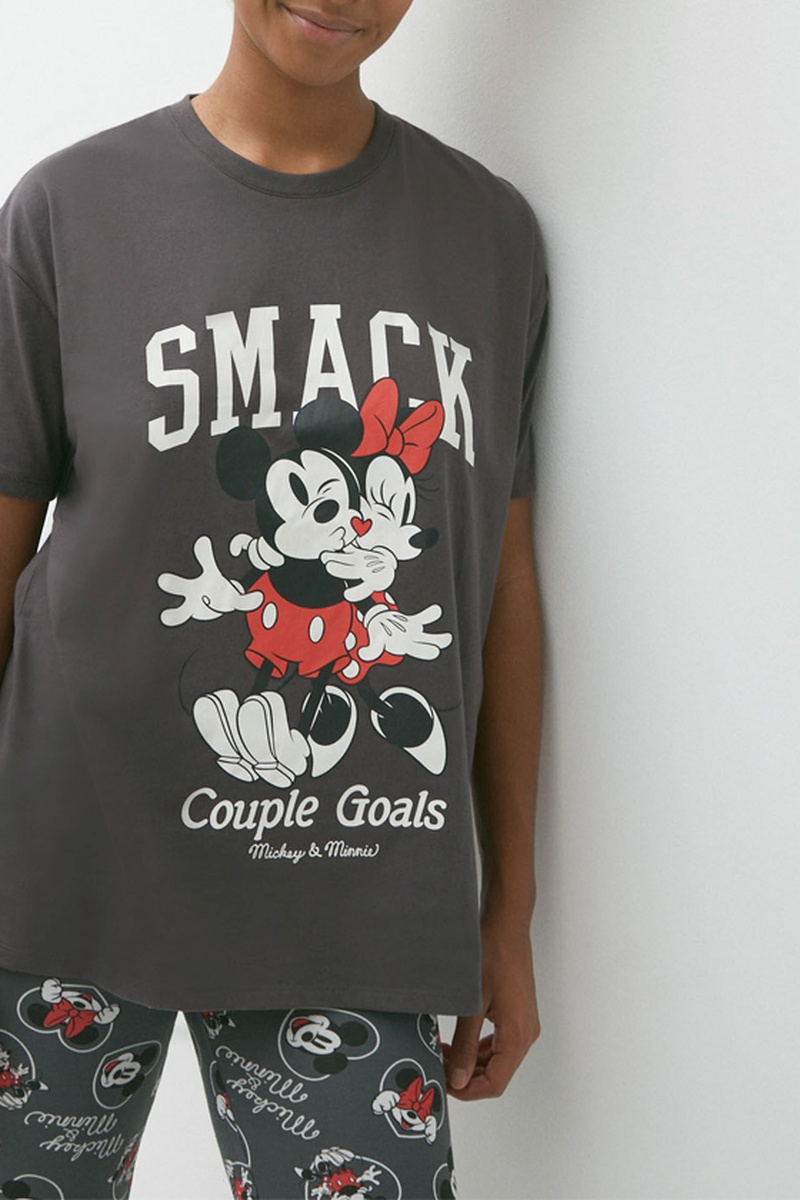 T-shirt de pijama Mickey e Minnie Disney em algodão biológico - Cinzento-escuro