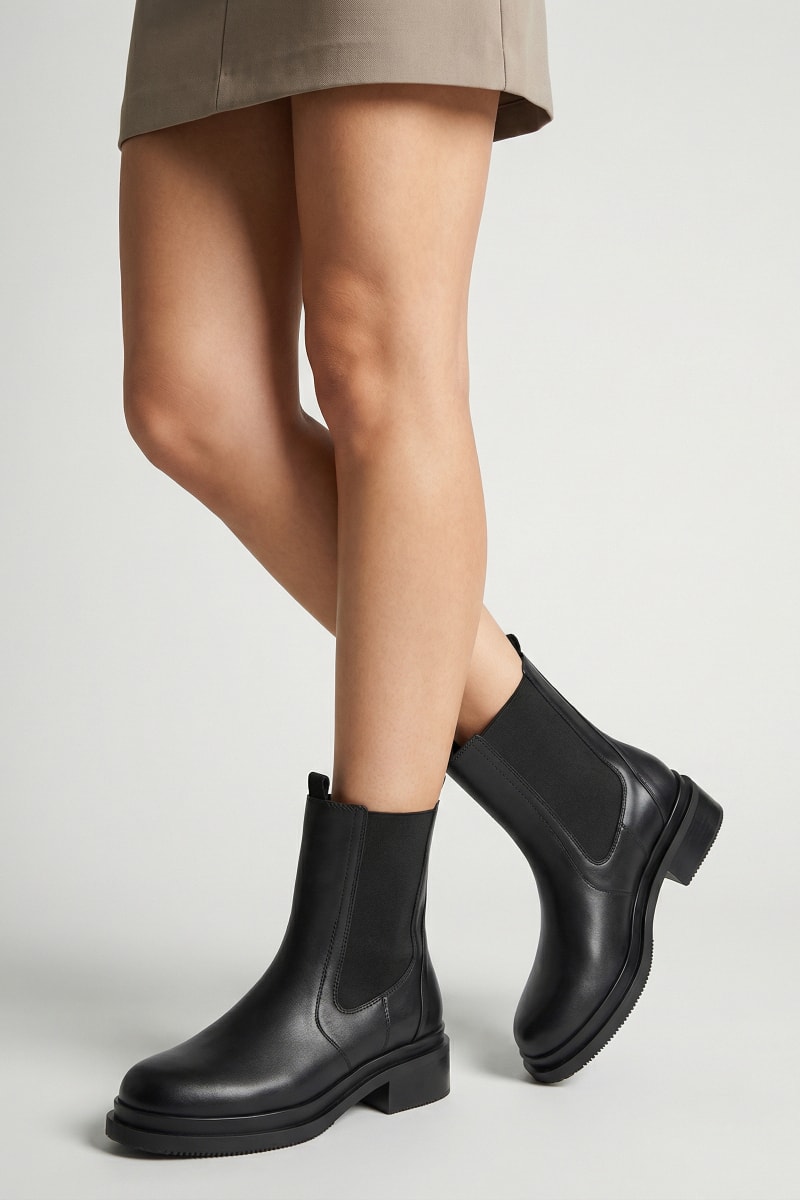Botins Chelsea em couro - Preto