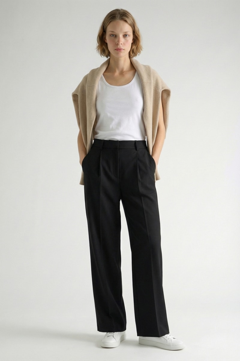 Calças direitas em lã - Preto