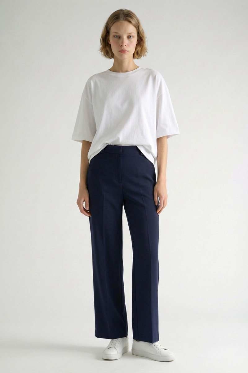 Calças wide legs - Azul-marinho